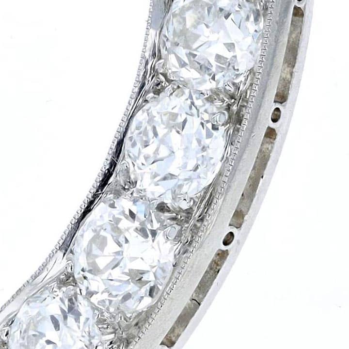 Hand made in platinum, the pin is supported by a chennier tube–style under-gallery for strength and comfort, and fitted with a secure pin and safety catch. With approximately 5.28 carats of bright European cut diamonds in the H–J color / VS–SI clarity range, this vintage diamond circle brooch is ideal on a lapel, dress, coat, hat, or worn on a chain as a pendant.