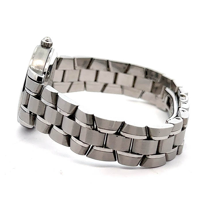 Ladies steel Audemars Piguet Milenary model bracelet watch; with black oval dial with Arabic (glow in the dark luminous) numerals and a date at 3 o’clock, powered by an automatic movement housed in an oval 3 piece case with screwed down back plate. Attached to a flexible 3 row, satin finished steel bracelet, fastened with a concealed folding clasp.