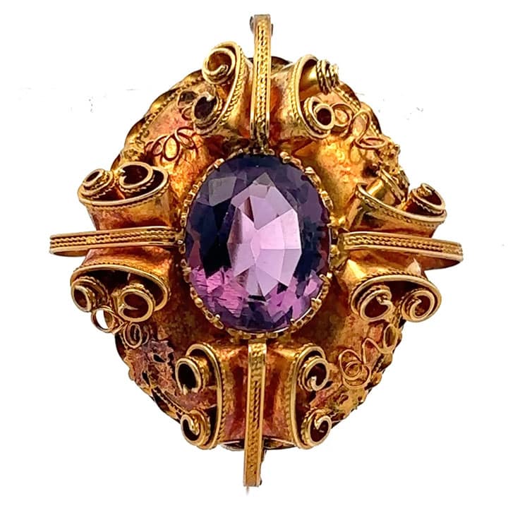 For collectors of Victorian jewelry, antique amethyst brooches, and beautifully detailed gold work, this piece is a timeless flirt.
