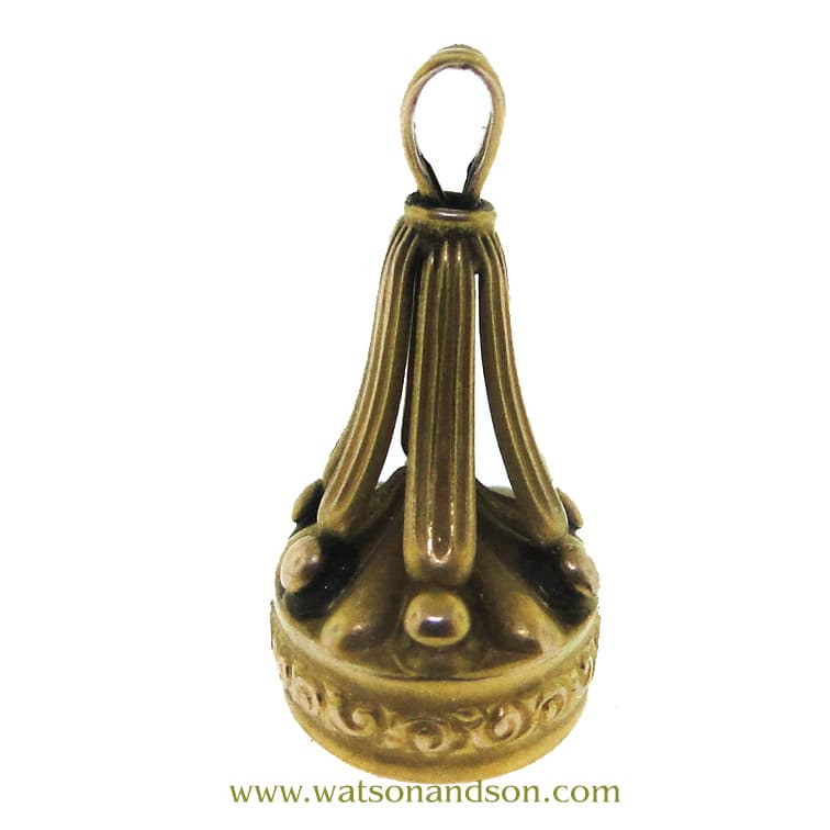 This charming Victorian-era 14K yellow and rose gold piece began life as a watch fob and wax seal, the kind used to press a personal mark into molten wax and close an envelope with unmistakable style (and a little bit of “don’t you dare open this”). Today it wears beautifully as a pendant, full of old-world detail and miniature goldsmithing.